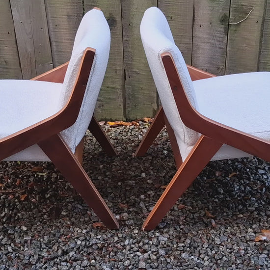 1950s chair designed by Neil Morris for Morris of Glasgow. This is the venered plywood version not the solid walnut version. I jave updated all the upholstery to meet current FR and recovered in a lovely ivory bouclé More Information and photos to follow