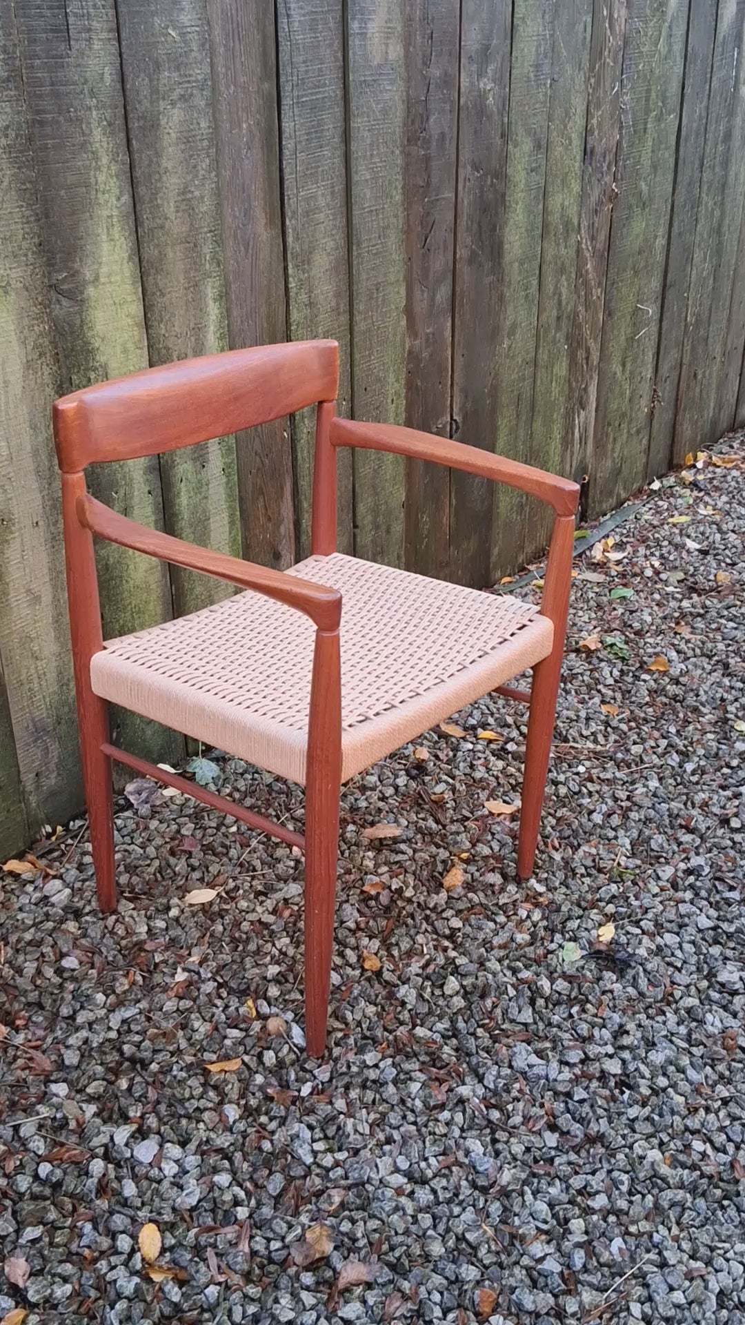 MCM one only recorded bramin carver chairs danish. The chair has been recorded. Each chair measures approx 59 cm wide at the arms by 78 cm tall at the back and 49.5 cm deep. Further measurements are