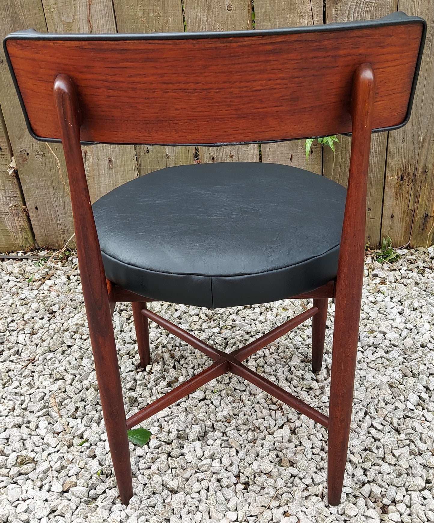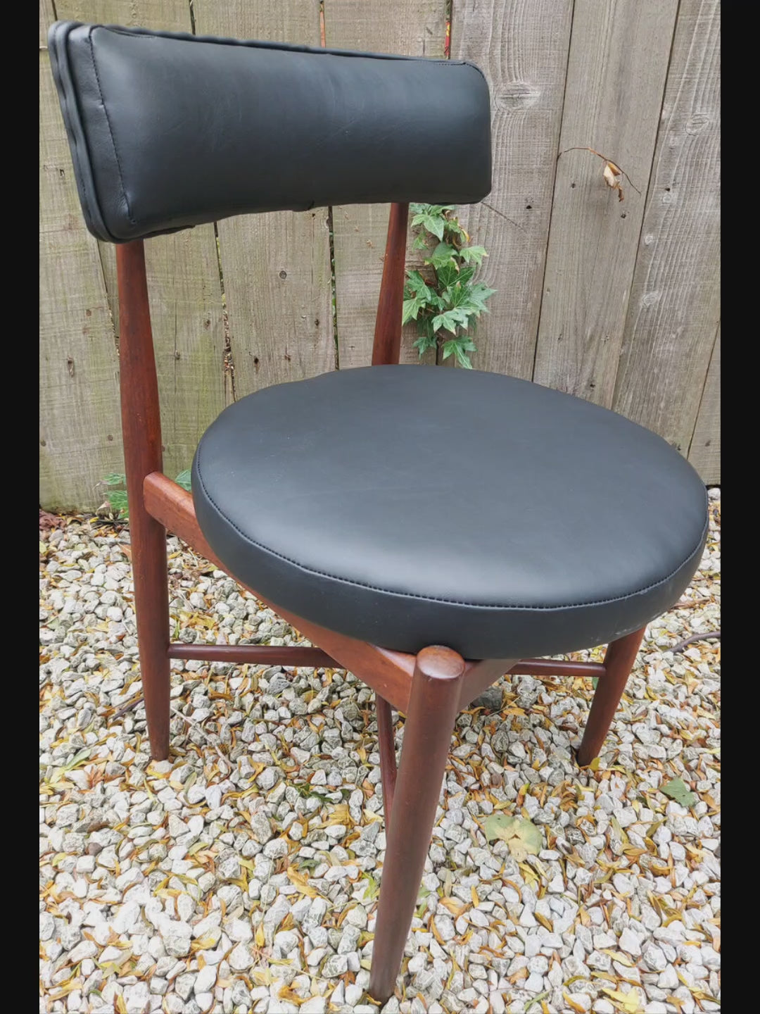 MCM 4 G Plan Fresco Dining Chairs Black Vinyl. I have updated the chairs to meet current FR regulations. More information and photos to follow.
