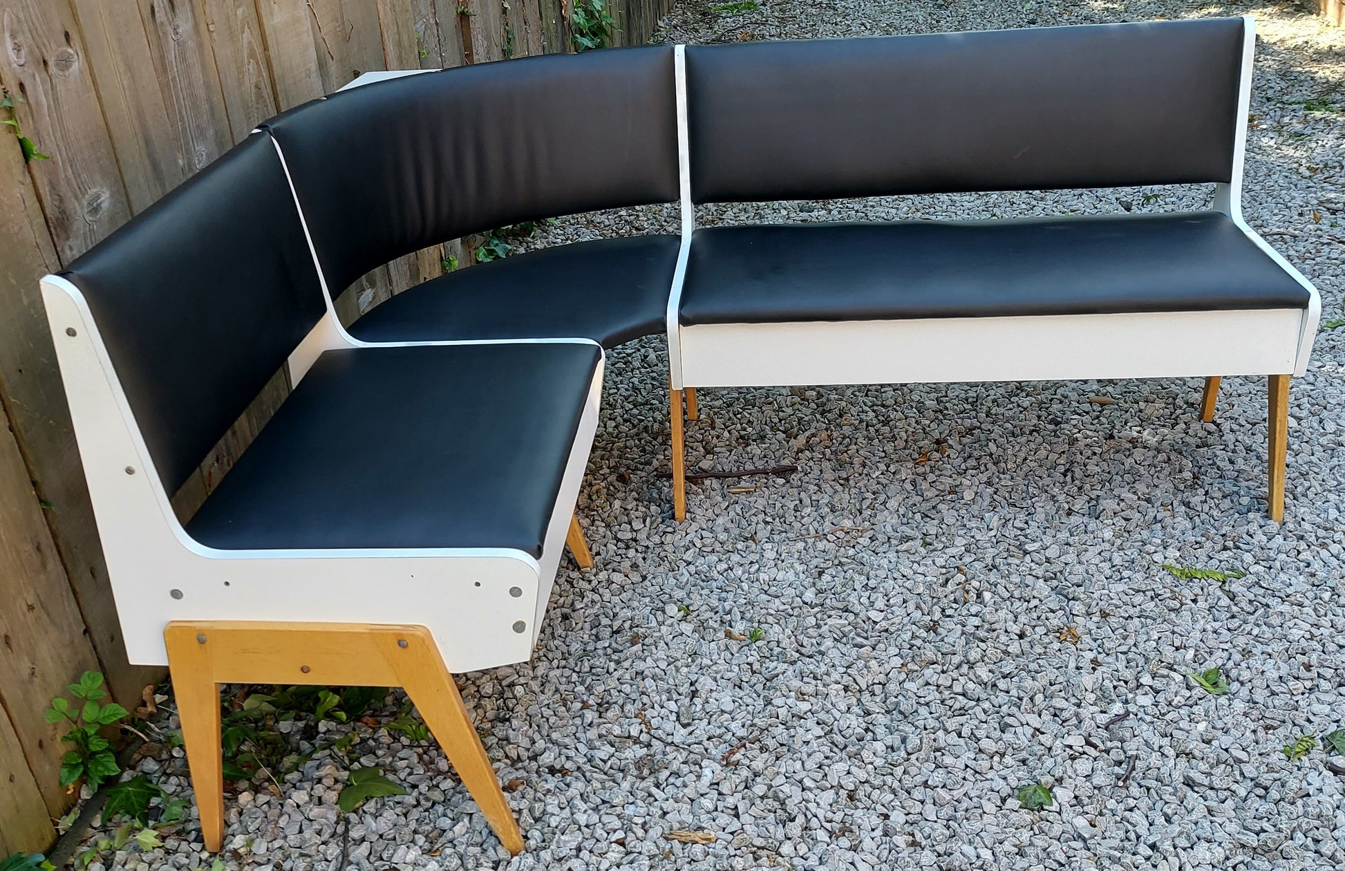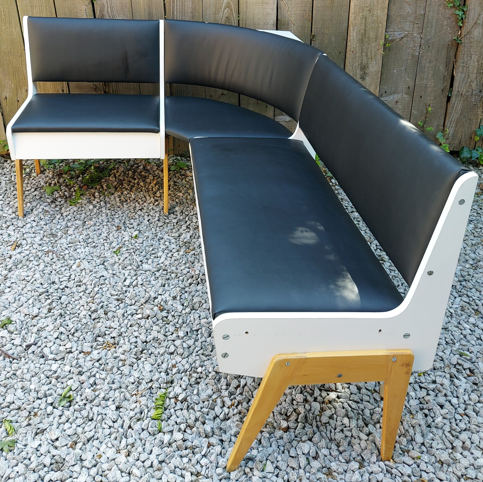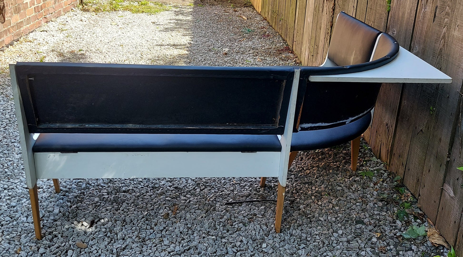 MCM Corner bench kitchen seating storage white formica black vinyl