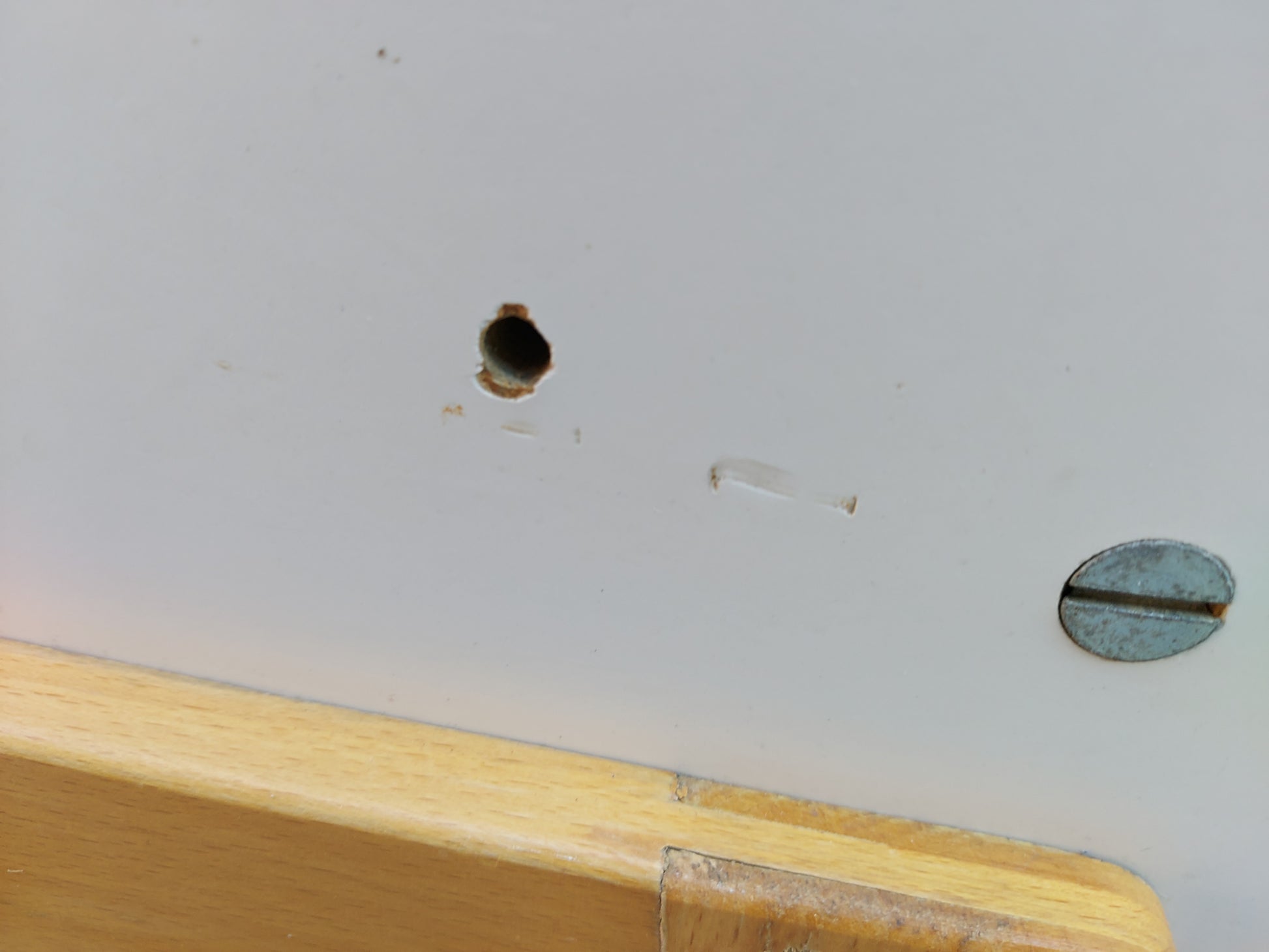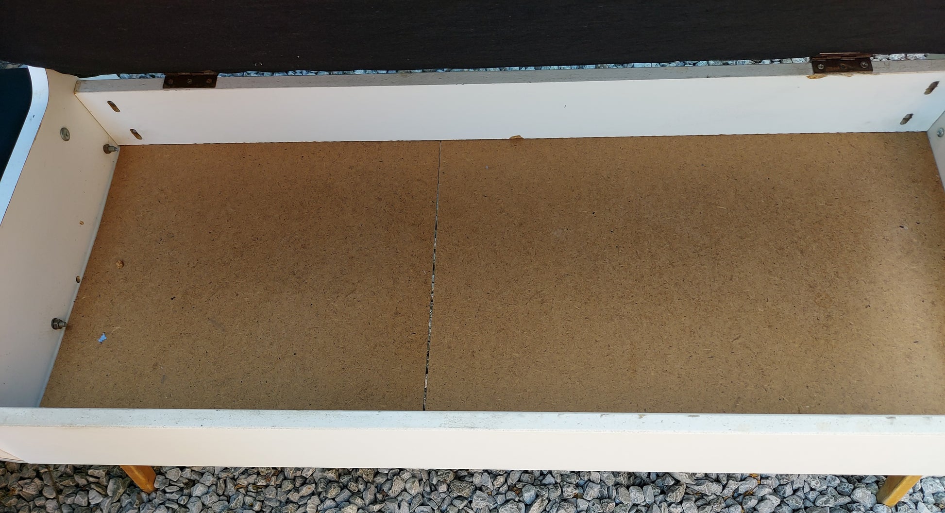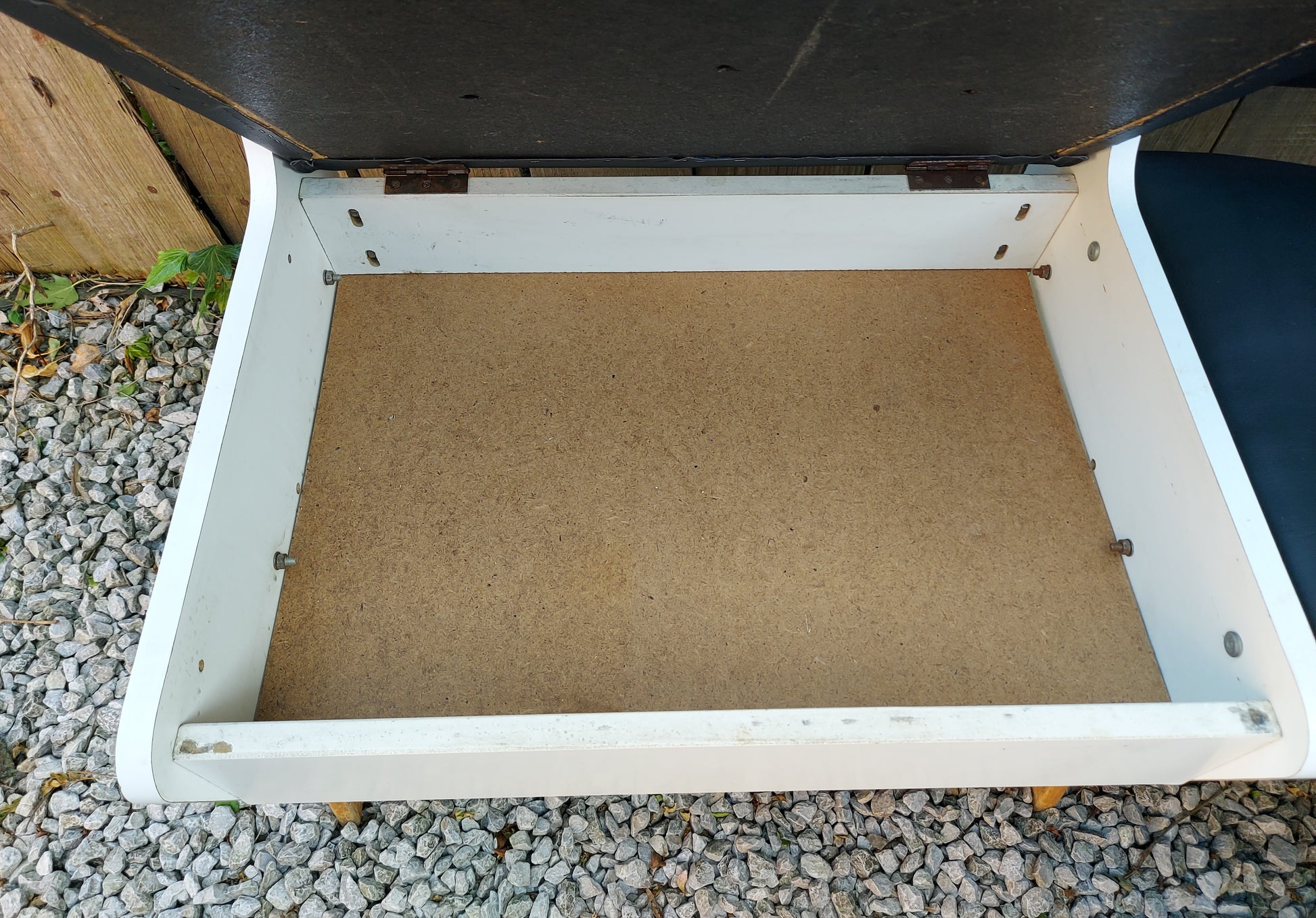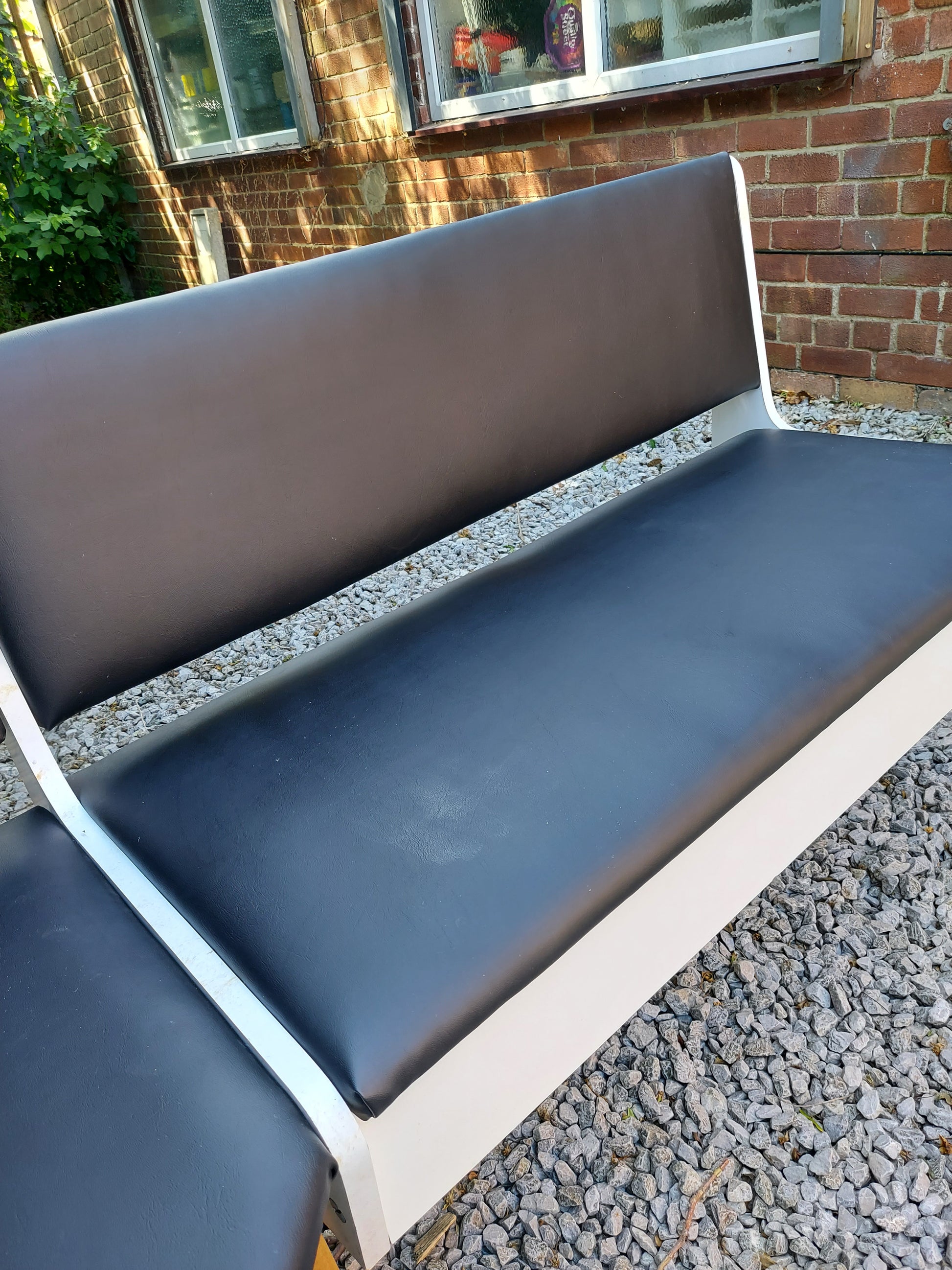 MCM Corner bench kitchen seating storage white formica black vinyl