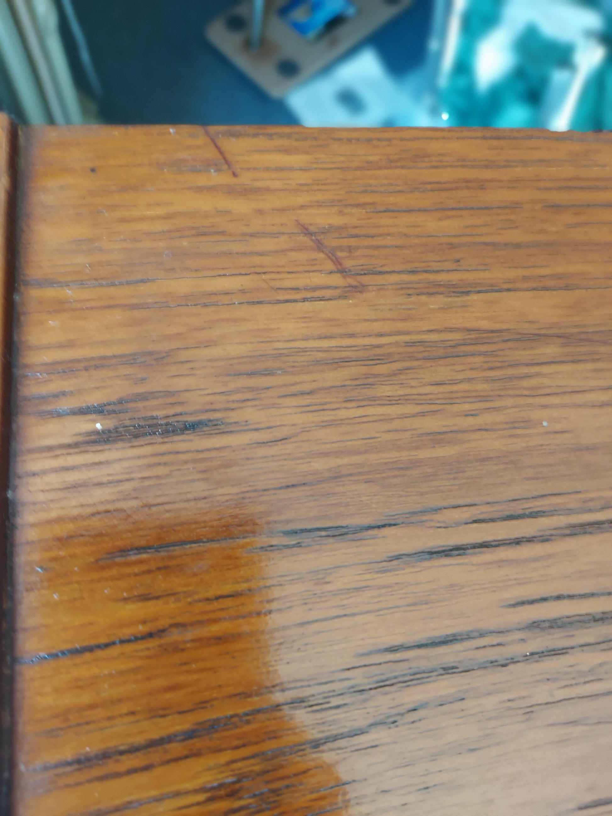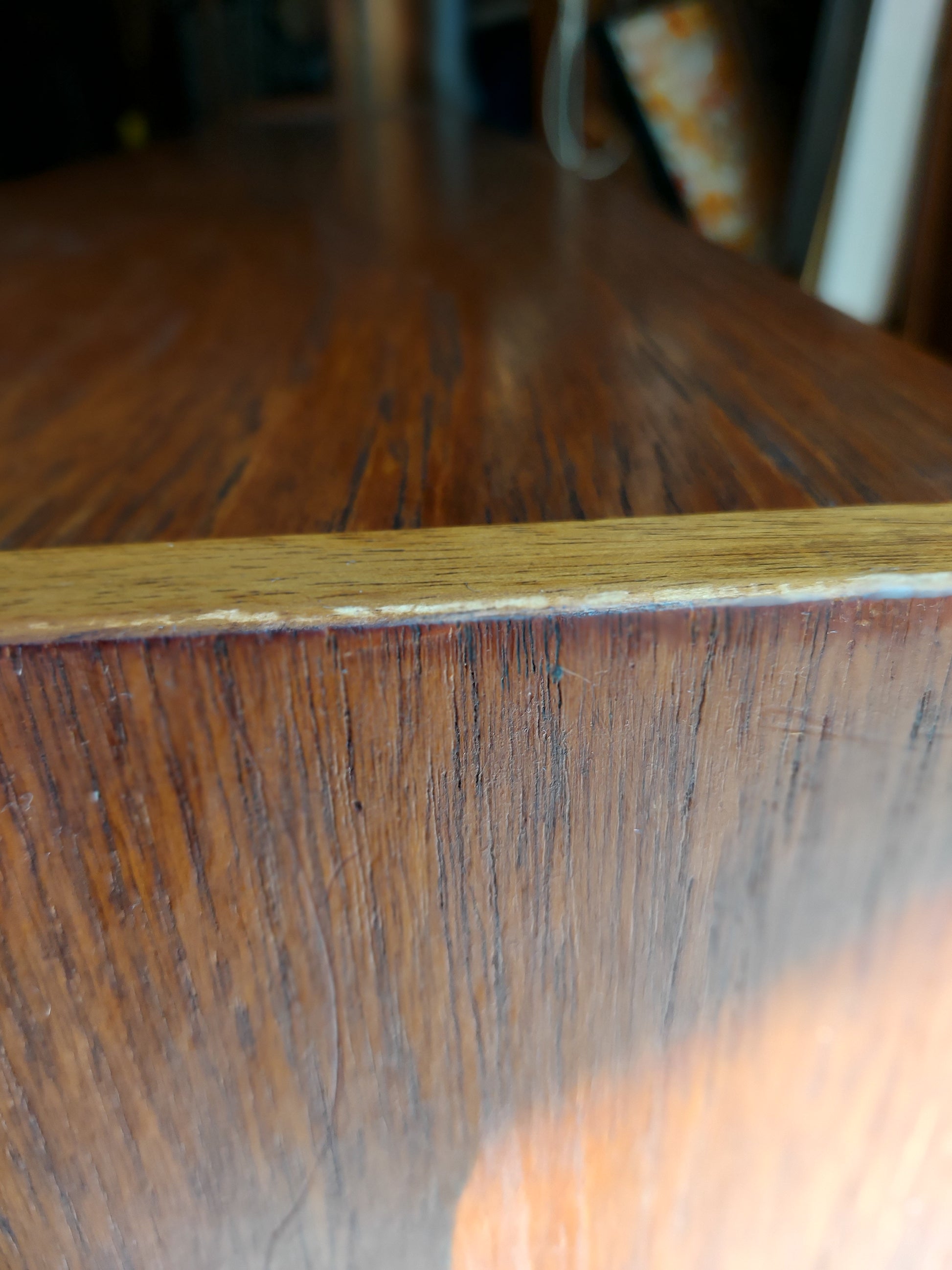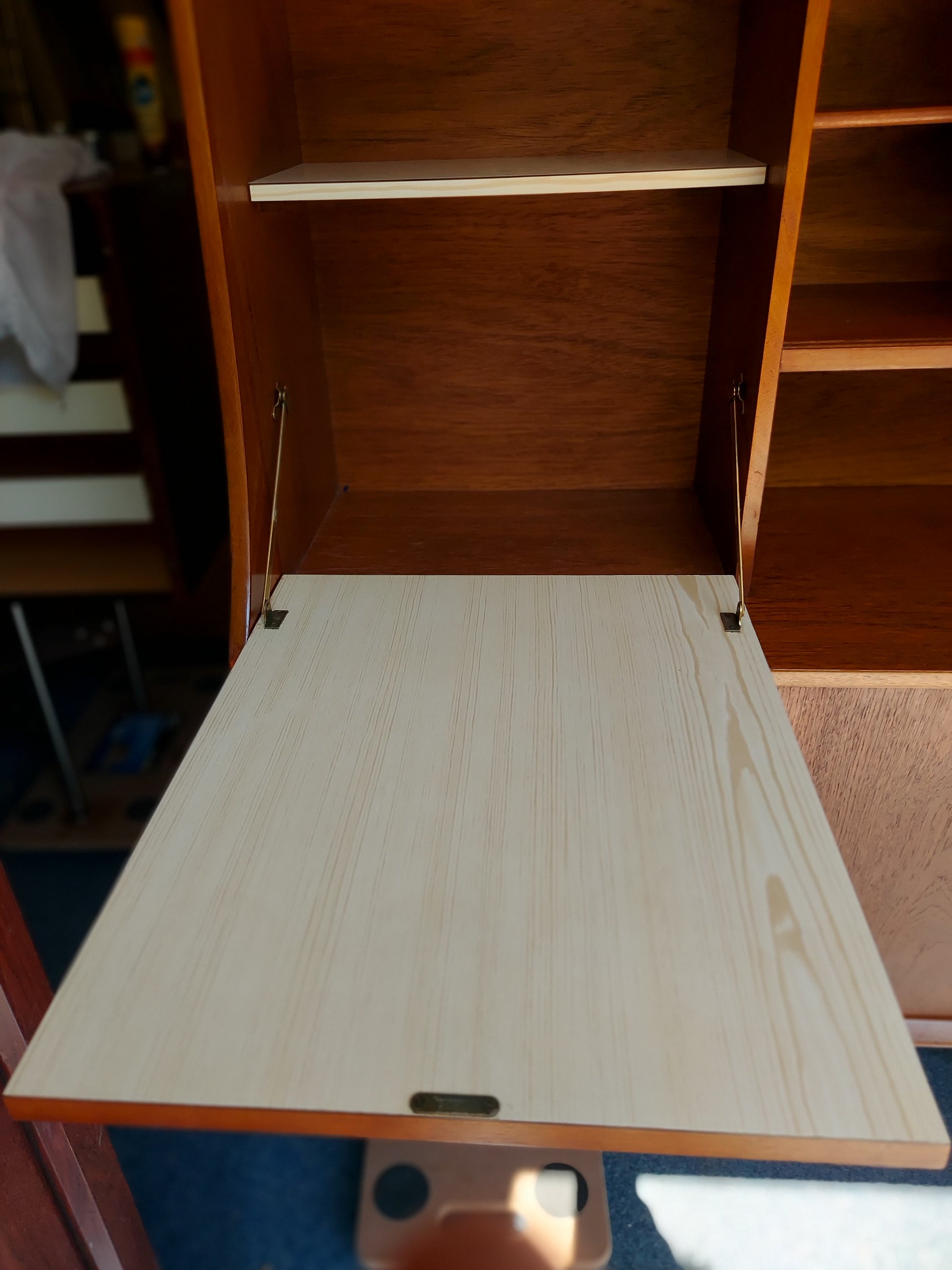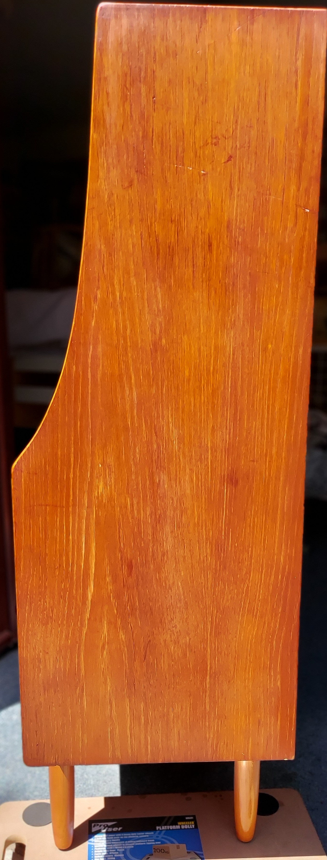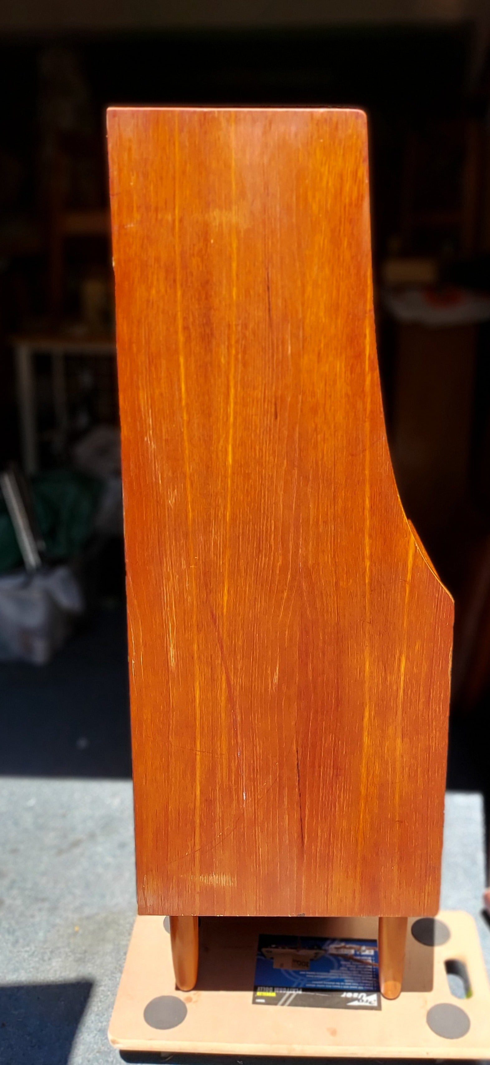 This is a preloved item so may show some signs of wear and tear consistent with its age and use. There are some long surface scratches to the left side and a few smaller surface scratches to the top, right side and sliding doors as I have shown in the photos. One of the legs was a little wobbly so i have glued it and support it with a metal strip so it no longer wobbles and the metal plate cannot be seen from the outside of the sideboard. None of this detracts from its use and retro loveliness.