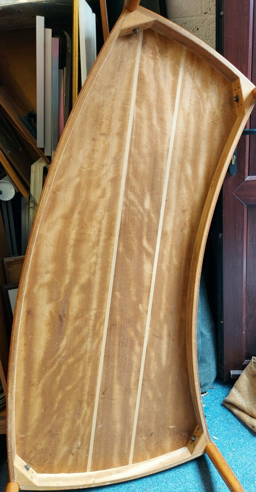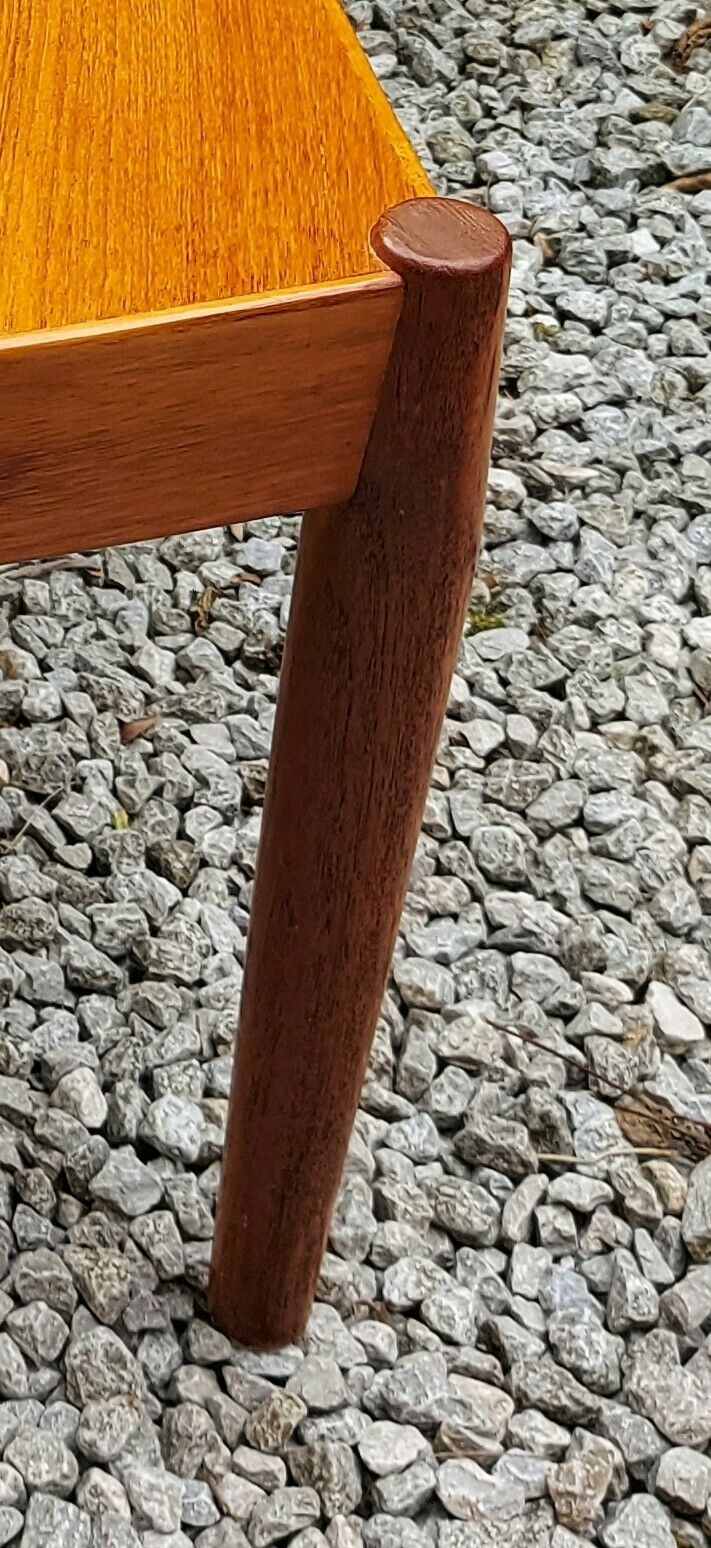 A stunning curved graduated veneered coffee/cocktail table Designed by Johanees Anderson for Trensum of Sweden in the 1960s. This really is a statement piece and measures an impressive 159cm across longest point and is 51cm at once and and gradually increases in size as it curves to 71cm. It stands at 45.5cm tall. I will be unscrewing the legs for transport so some self assembly will be required. I am not sure what wood it is made from but it seems a bit light to be teak so could be oak or beech wood and veneer. This is a preloved item so may show some signs of wear and tear consistent with its age and use. There are a few surface marks as shown in the pictures . None of this detracts from its use and retro loveliness. |