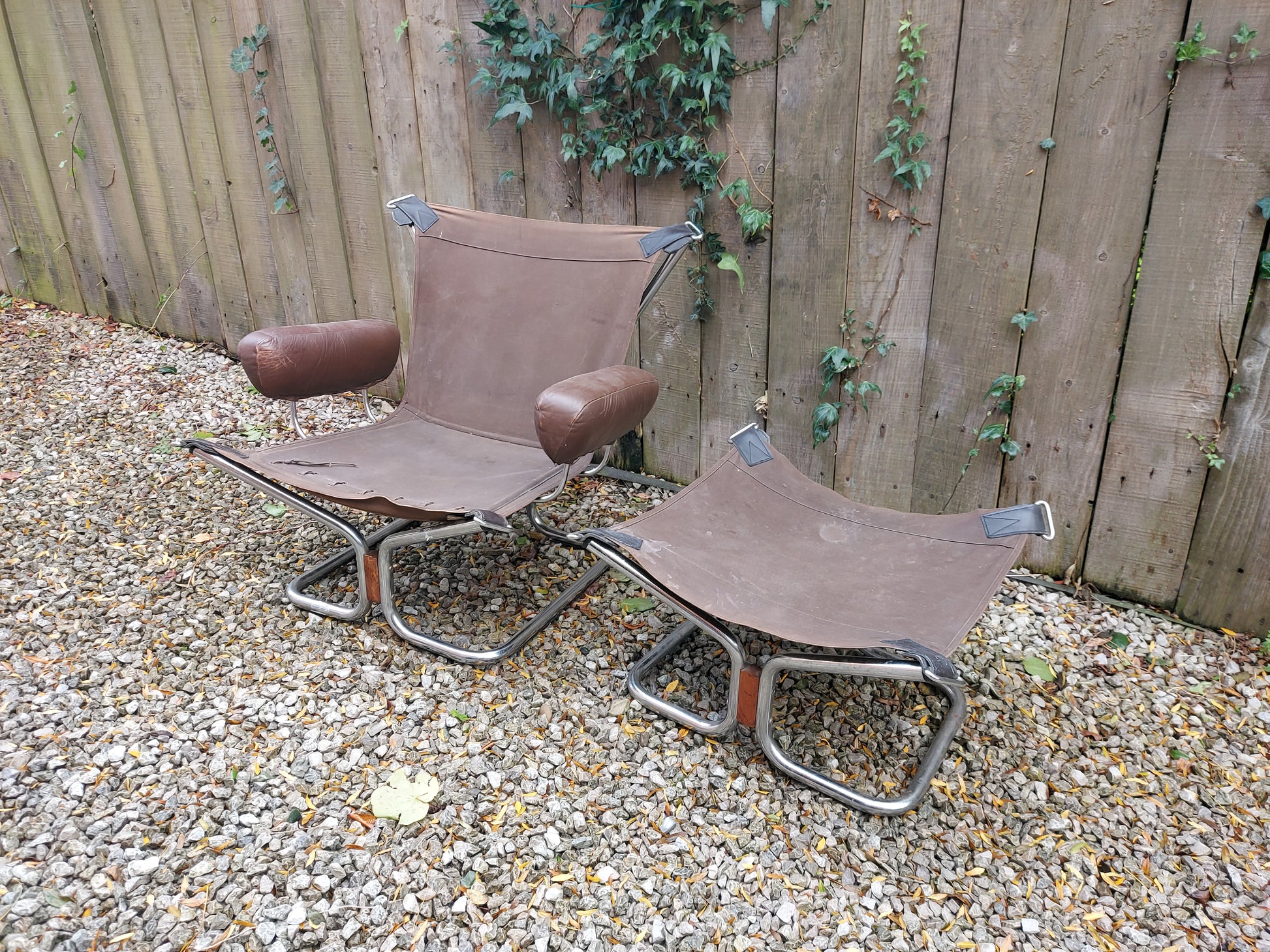 MCM Wing Lounge Chair and stool by Harald Relling for Westnofa 1960s