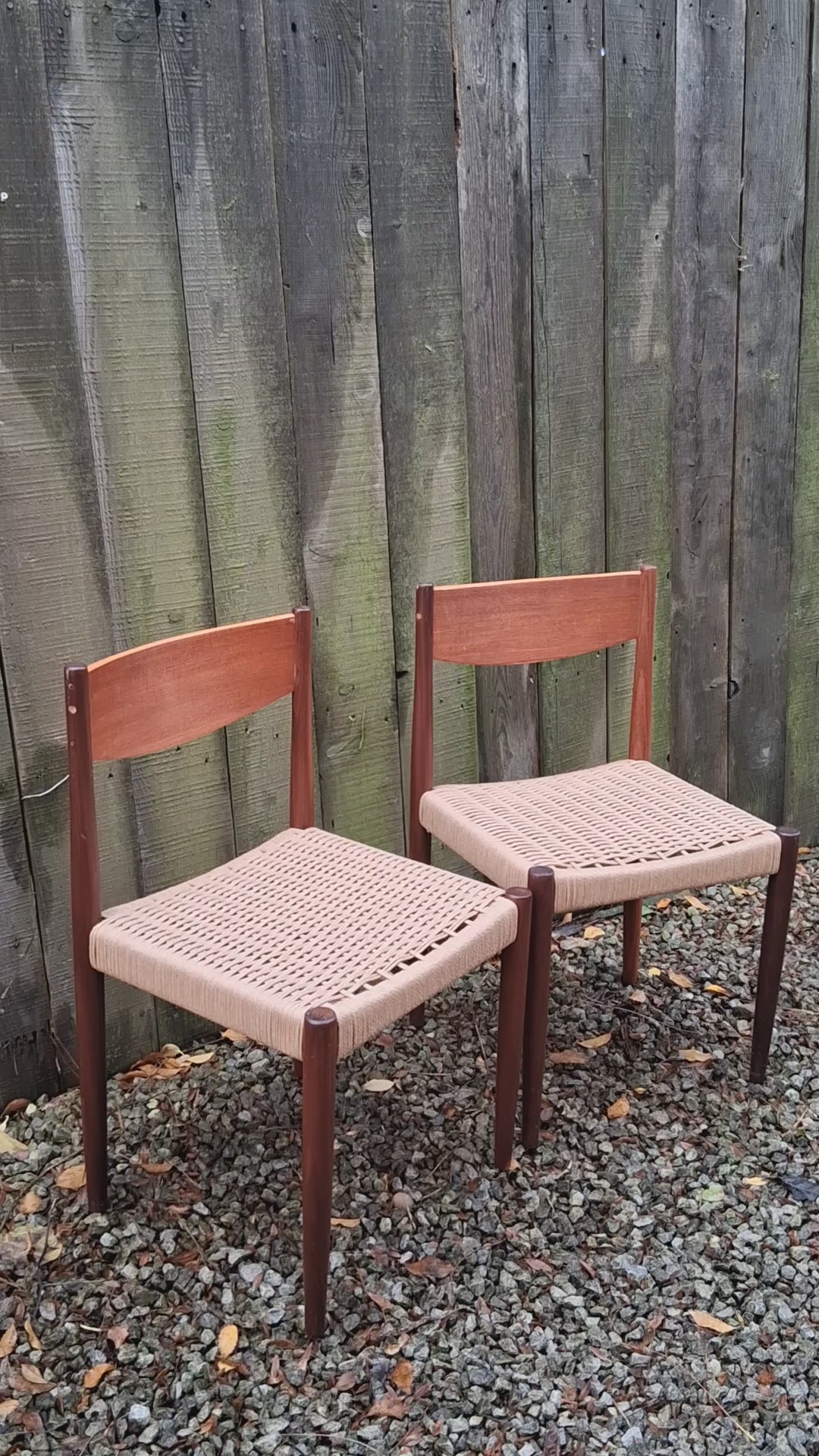 Mid Century Modern 2 Frem Rojle Danish Papercord Chairs Recorded