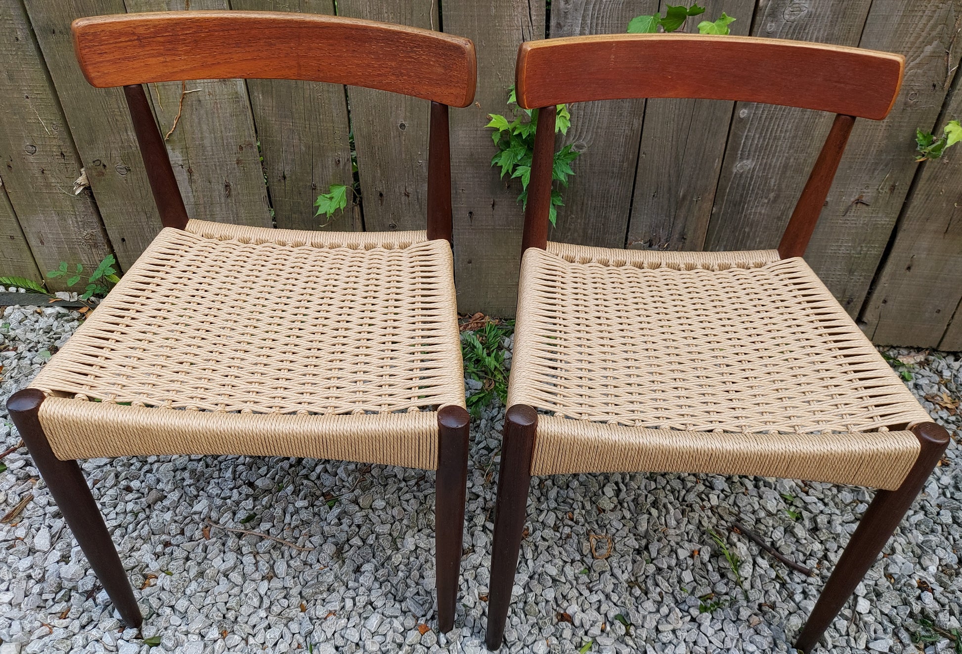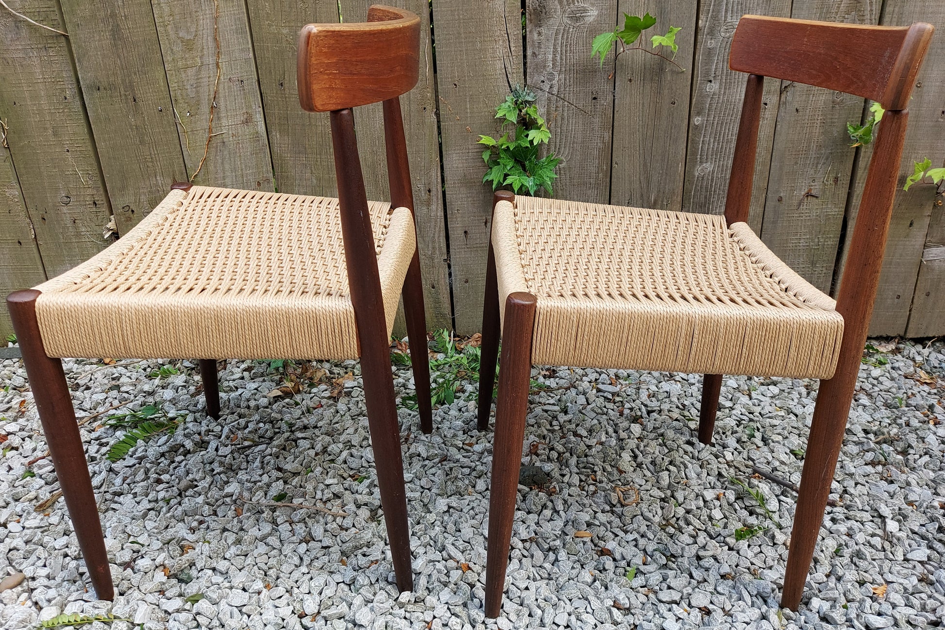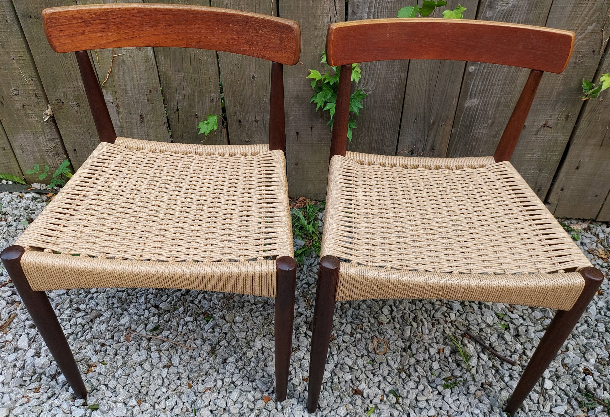Mid Century Modern 2 MK200 Mogens Kold Corded chairs. Both chairs have been recorded.