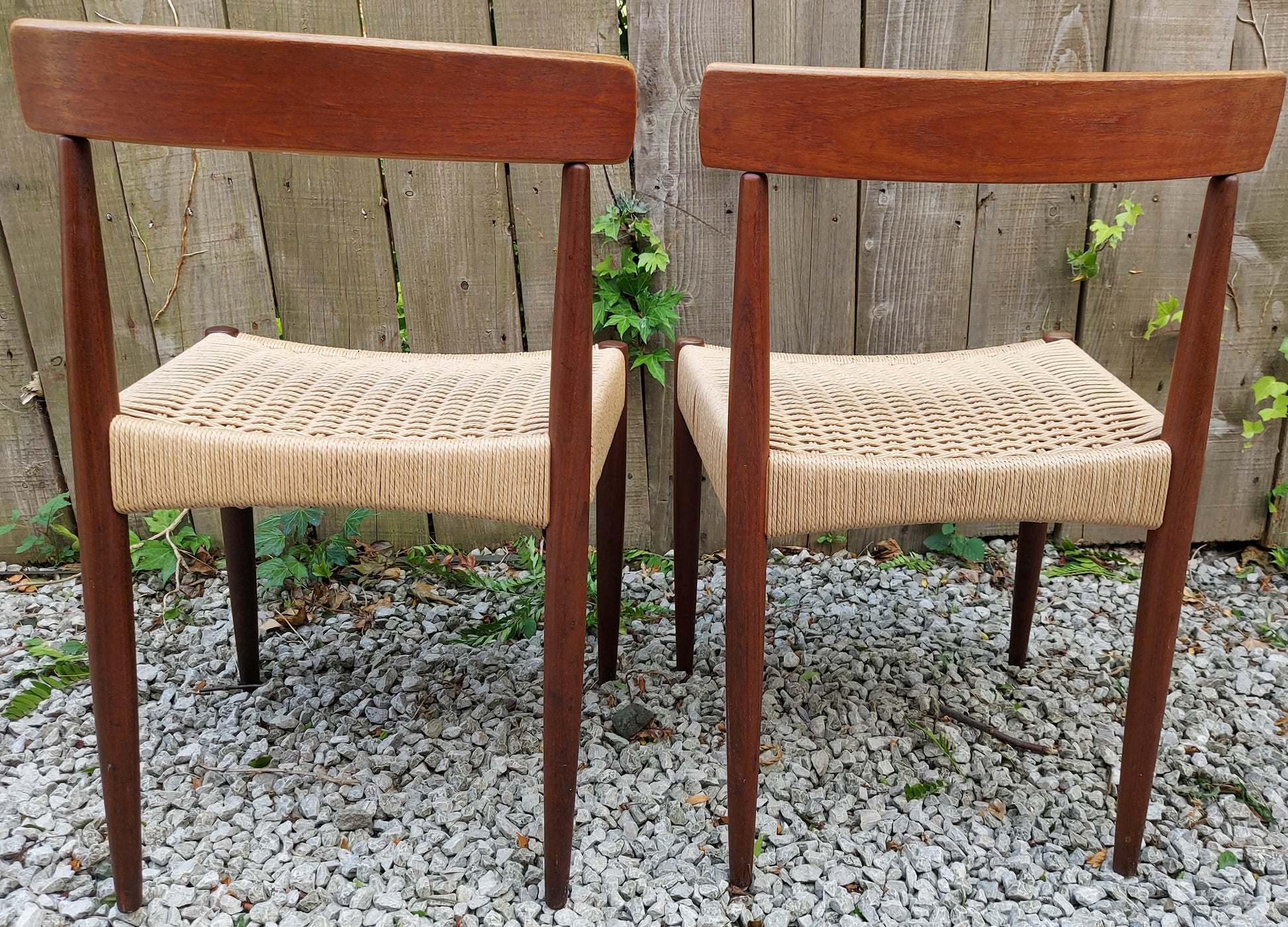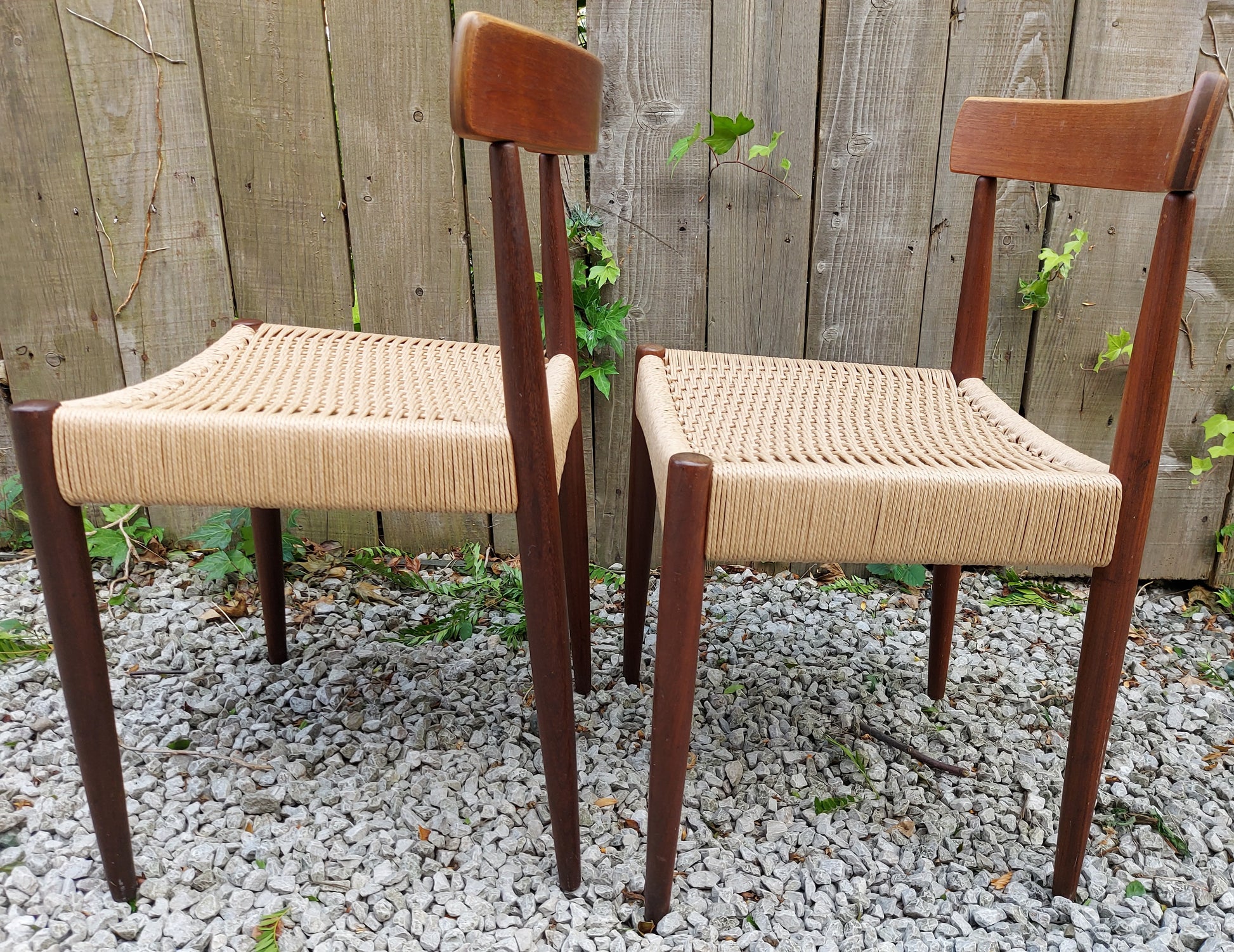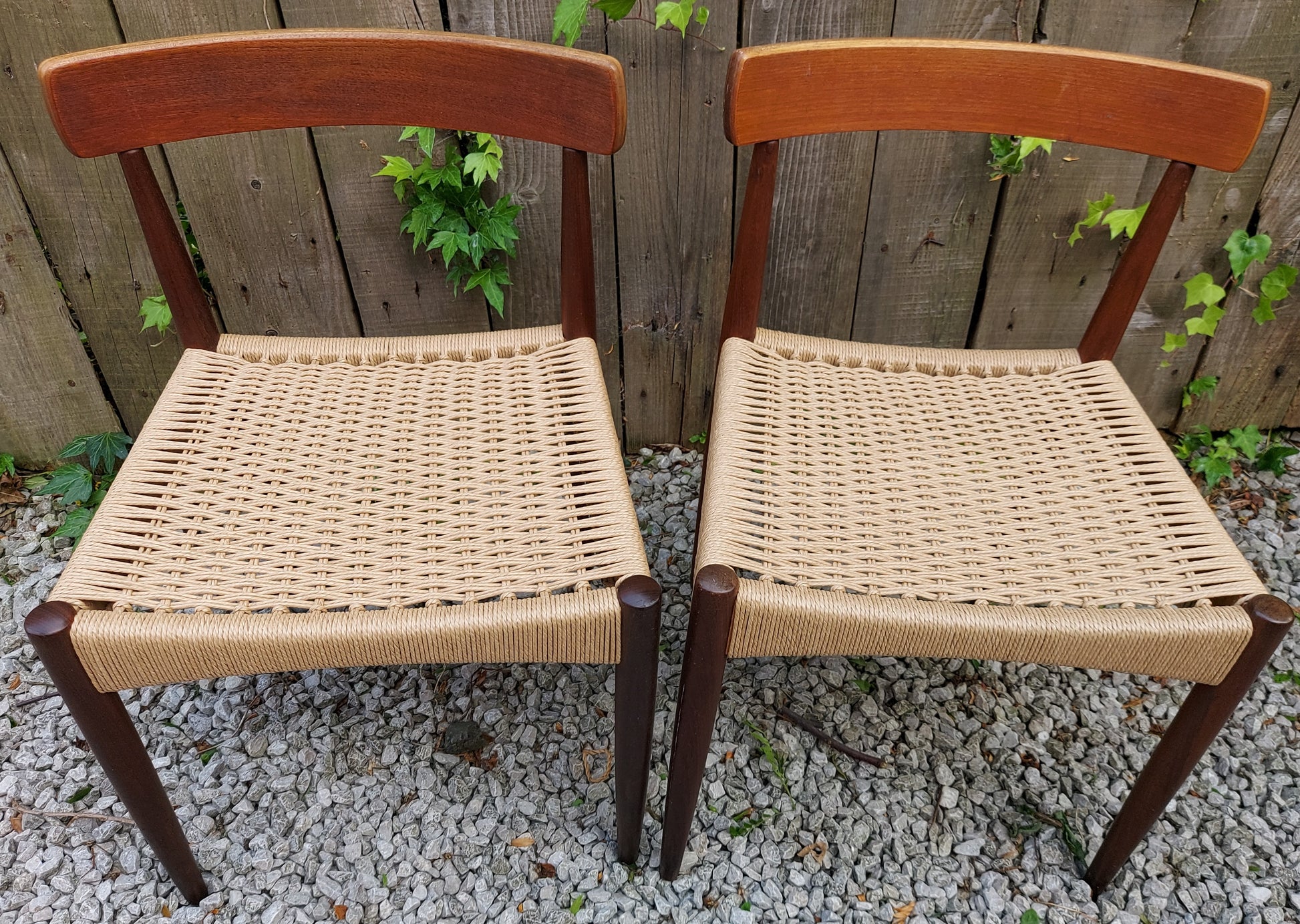 Mid Century Modern 2 MK200 Mogens Kold Corded chairs. Both chairs have been recorded.