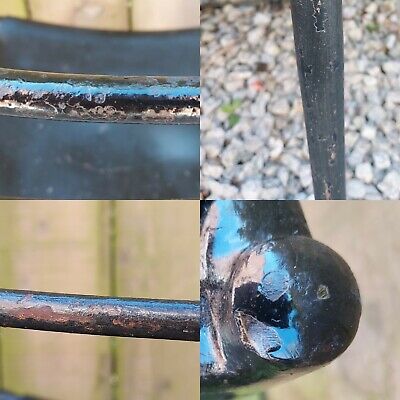 This is a preloved item so may show some signs of wear and tear consistent with its age and use. There are marks to the leather and also some of the original paint work has chipped in some places so i have resprayed all the chairs with a light coat of satin black paint to stop the underneath metal from rusting. There is a fourth chair but one leg has snapped off so would need repairing by the buyer.None of this detracts from its use and retro loveliness. |