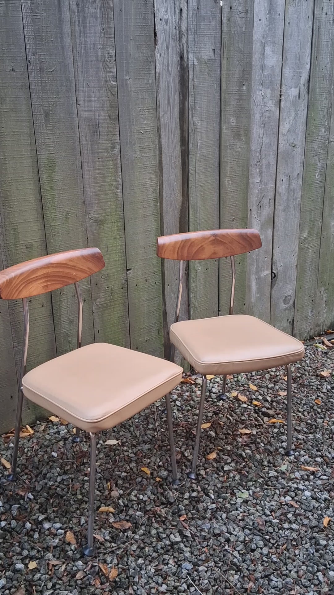 Mid Century Modern 2 Stag 'S' Range Chairs John Sylvia Reid Beige Vinyl