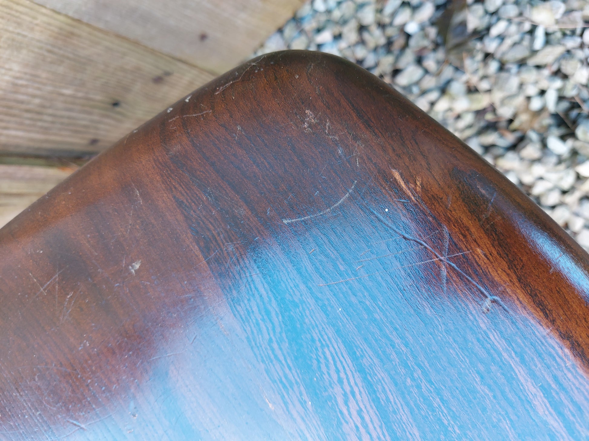 This is a preloved item so may show some signs of wear and tear consistent with its age and use. There are surface scratches and dark marks to the top and legs as shown in the pictures. None of this detracts from its use and retro loveliness.