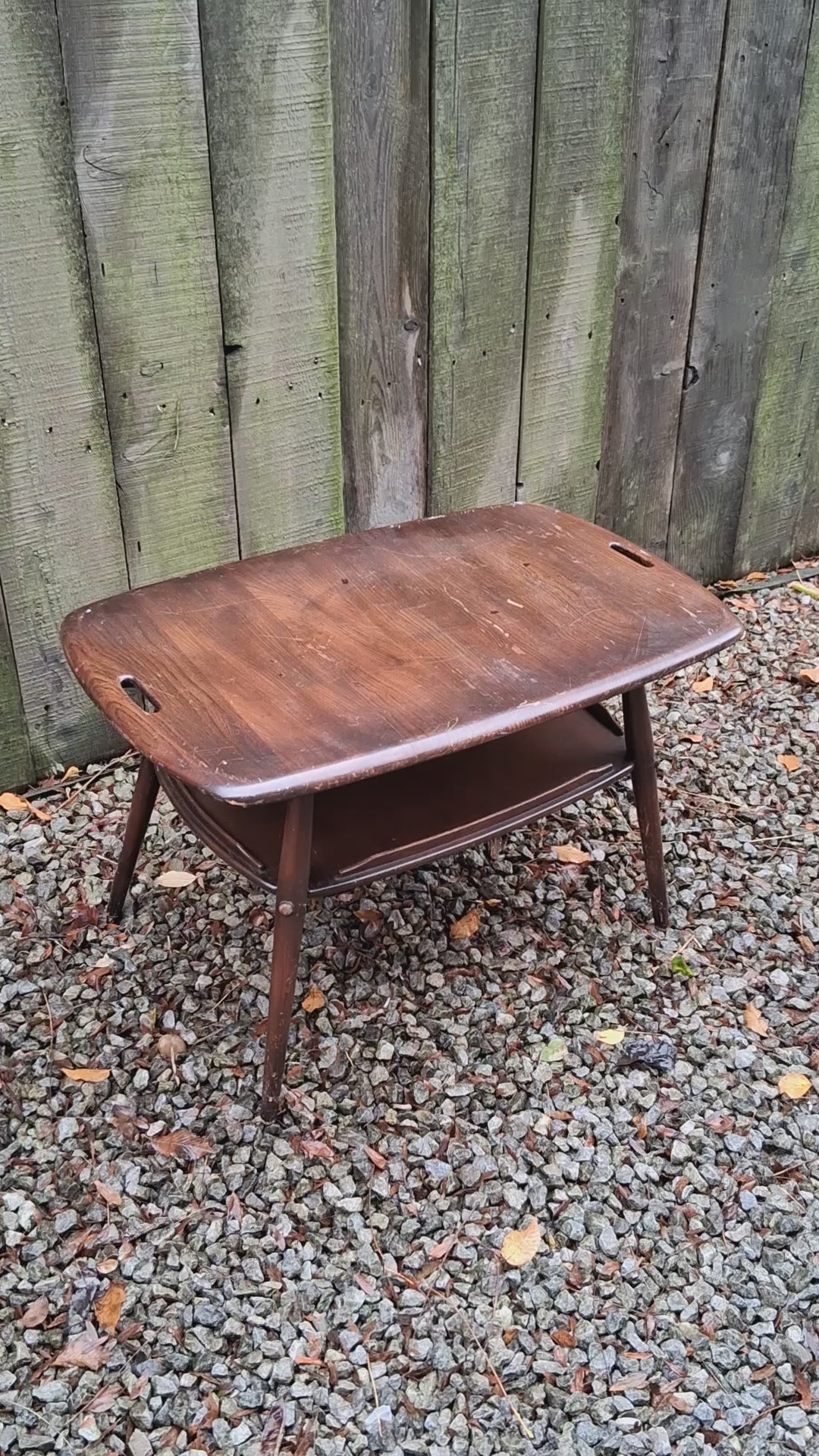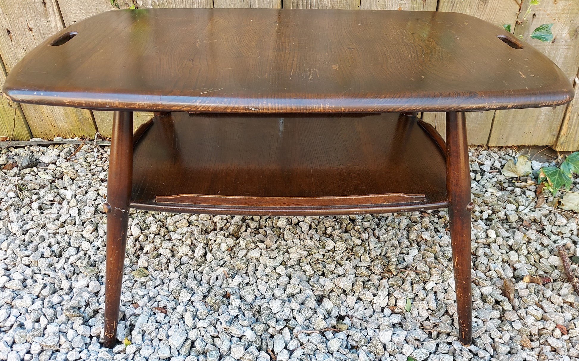 Beautiful Butlers Tray made by Ercol with original Blue label. It is finished in the original traditional dark finish. It measures approx 73 cm l ong 45 cm deep and 44.5 cm tall.