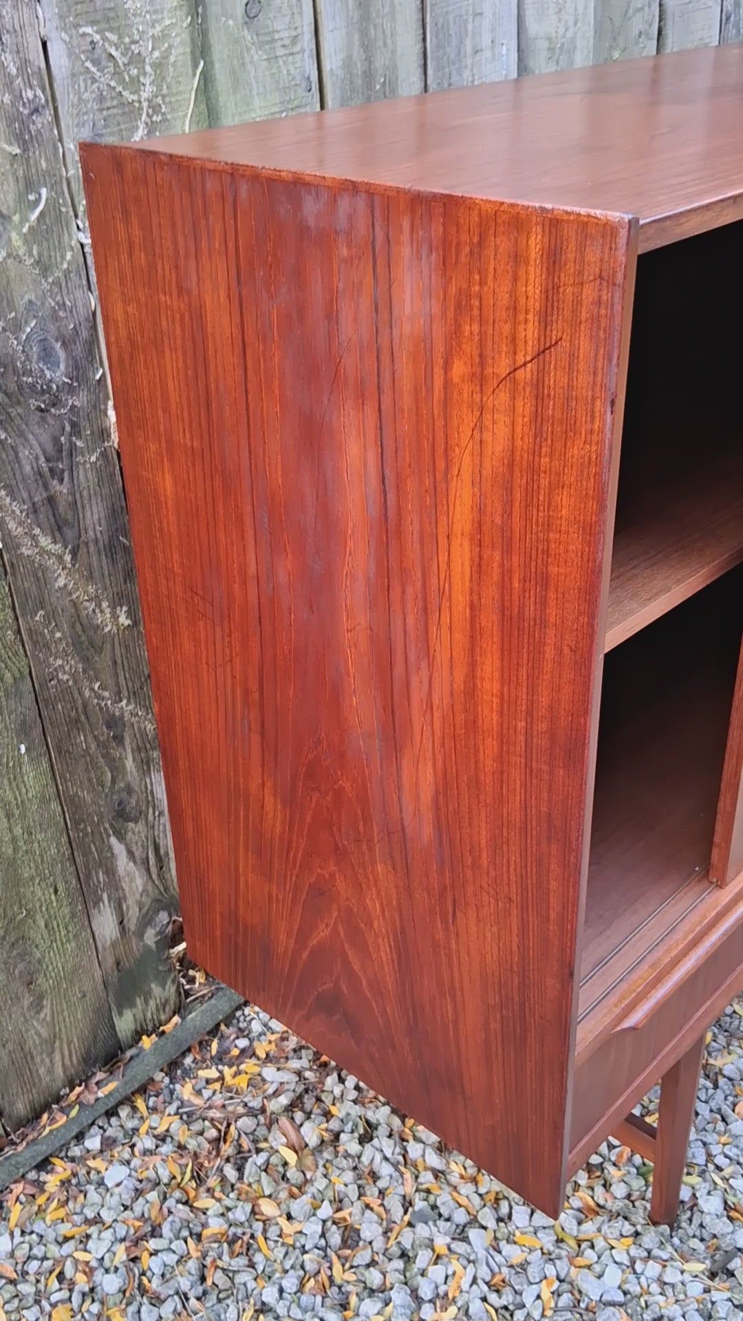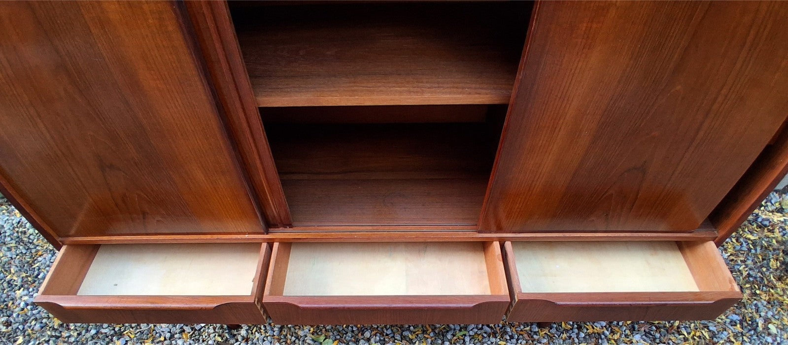 Mid Century Modern EW Bach Teak Highboard for Sejling Skabe. I have sanded the outside of the sideboard and reoiled with several coats of danish oil to give a more even finish. The highboard measures approx