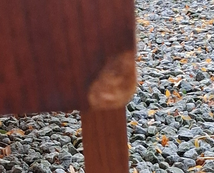 This is a preloved item so may show some signs of wear and tear consistent with its age and use. I have replaced on of the door handles which is only noticeable on close inspection. There are a few marks to the veneer on the top, side and doors. There is some veneer missing to the right of the highboard at the bottom right corner. I have shown pictures of all the markings. None of this detracts from its use and retro loveliness.