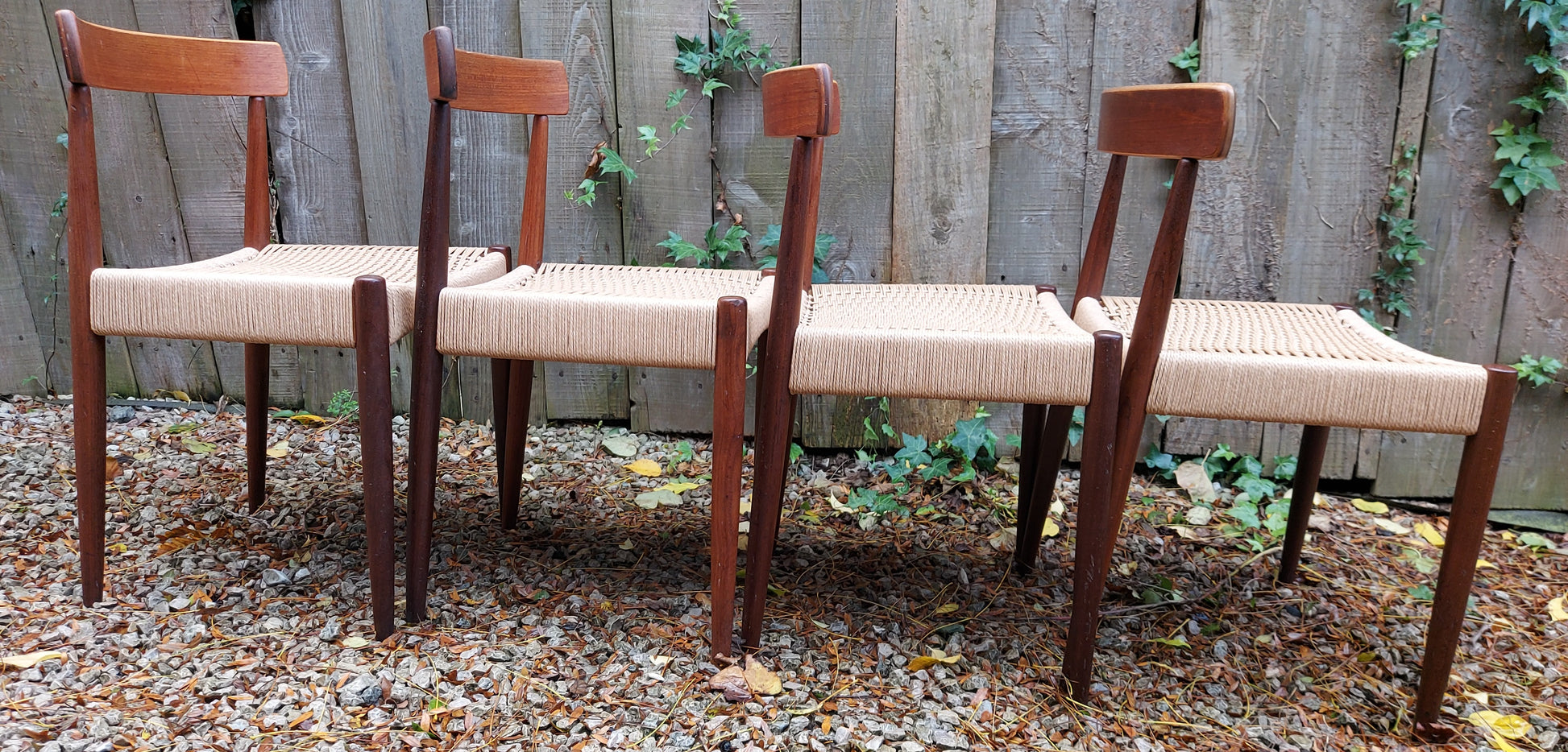 Mid Century Modern 4 MK200 Mogens Kold Corded chairs. All the chairs have been recorded.