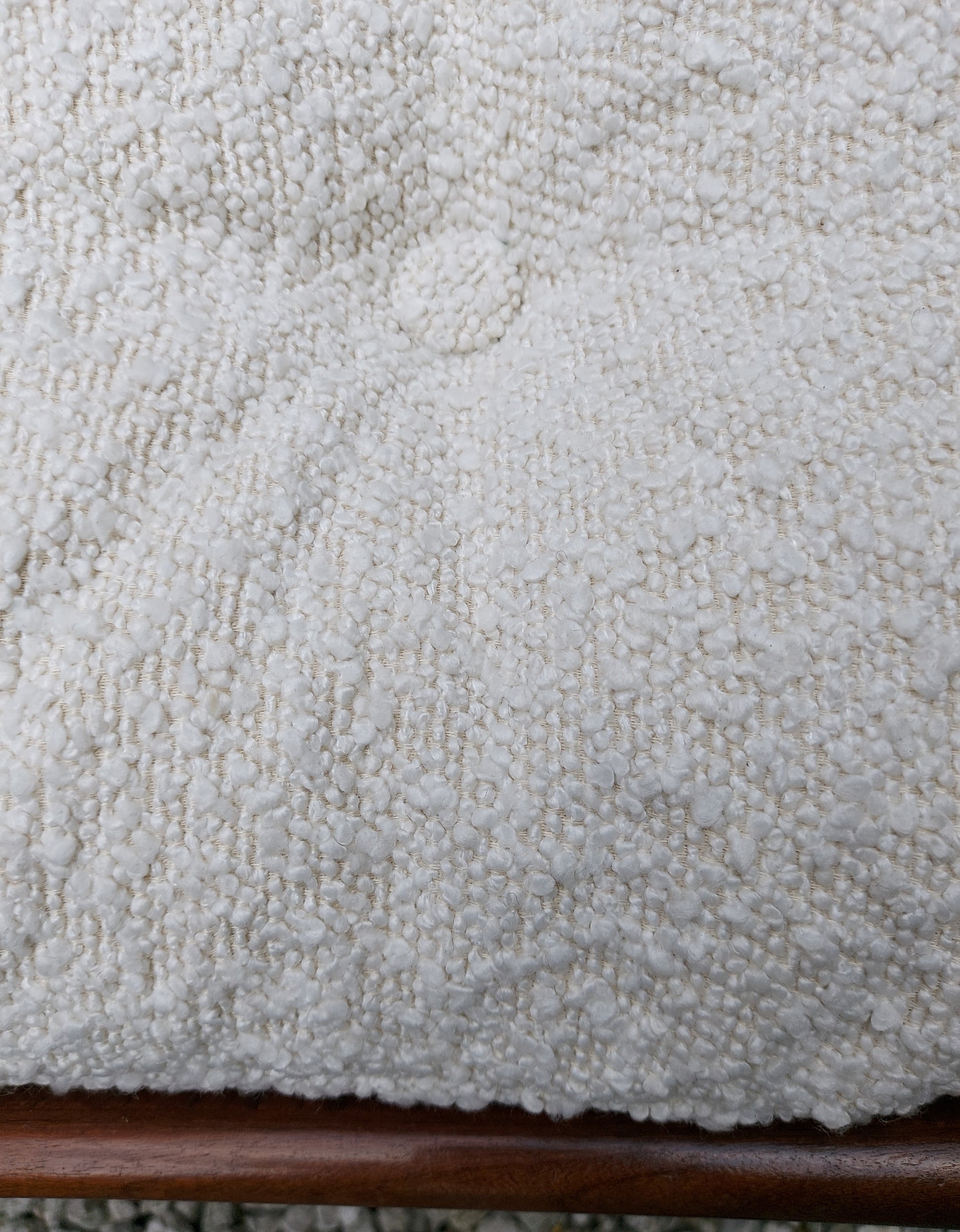 Mid Century Modern GPlan Teak Saddle Footstool. I have recovered the stool with ivory bouclé. It measures approx