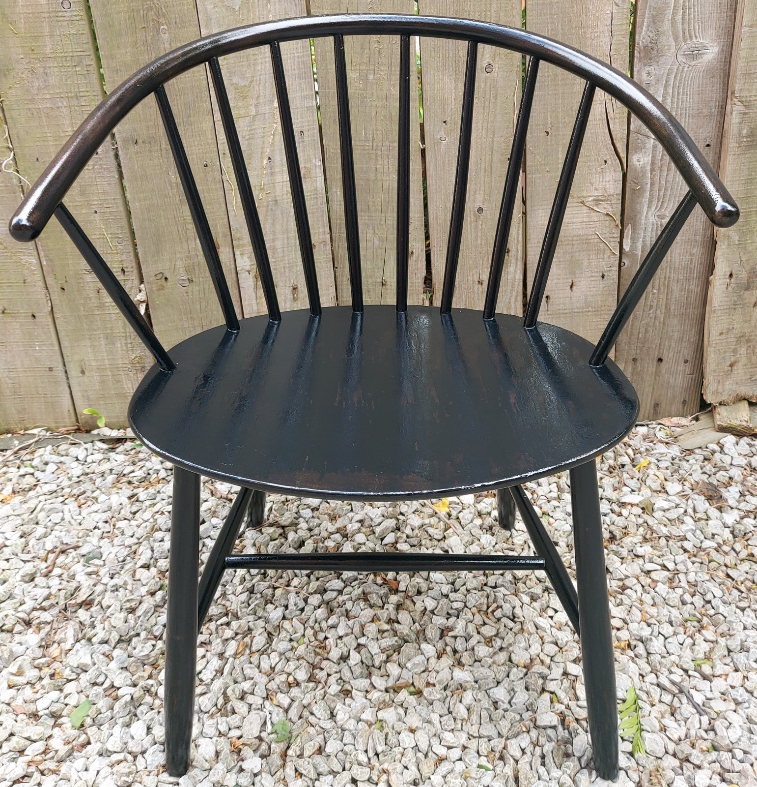Mid Century Modern J64 armchair by Ejvind A Johansson. I have sanded down the chair and repainted with a satin black paint.