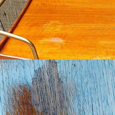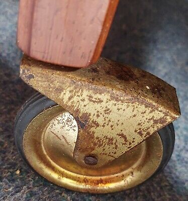 This is a preloved item so may show some signs of wear and tear consistent with its age and use. There are a couple of ring marks to the top that show up more in different lights. The handle is a bit wobbly as the two supports have cracked slighly as shown in the pictures. I have reglued them to sturdy it up but will still be a bit wobbly. All the castors have some rust and marking to them. None of this detracts from its use and retro loveliness.