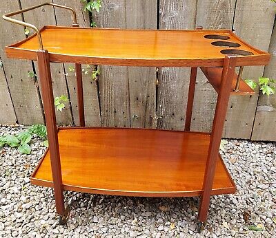 Mid Century Modern Teak Drinks Trolley. It measures approx 75cm long by 47.5 cm wide and 78 cm tall at the handle.