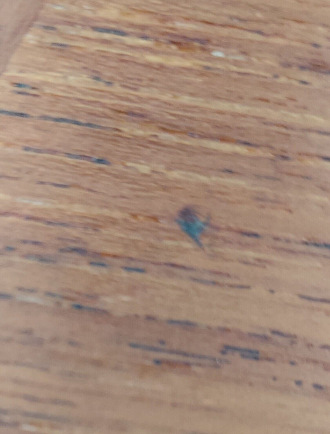 | Mid Century Modern Teak Side table by Mobelintarsia. It has a lovely detail to the top. The diameter of the table is approx 59.8 cm and it is 49.75 cm tall. I have sanded back the top to show of the beautiful detailing and protected the top with osmo wax oil This is a preloved item so may show some signs of wear and tear consistent with its age and use. There is a small amount of wear to part of the edge as shown in the photo, and also a small mark, a few mm in size, again shown in the photos. None of this detracts from its use and retro loveliness. |