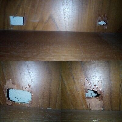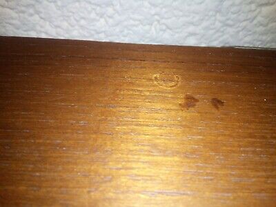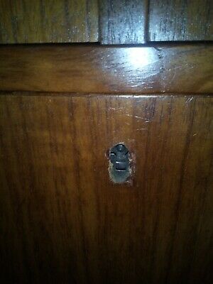 This is a preloved item so may show some signs of wear and tear consistent with its age and use. There are some chips to the veneer on the bottom right side of the bottom unit. Also there is a light patch to the top of the bottom unit but this is not seen when the top bureau is on it. There is a little chipping around the keyhole. there are a few marks to the top bureau section. At present the bureau door does not close flush with the unit but I think this is the hinges so I am sourcing new hinges at present. None of this detracts from its use and retro loveliness.