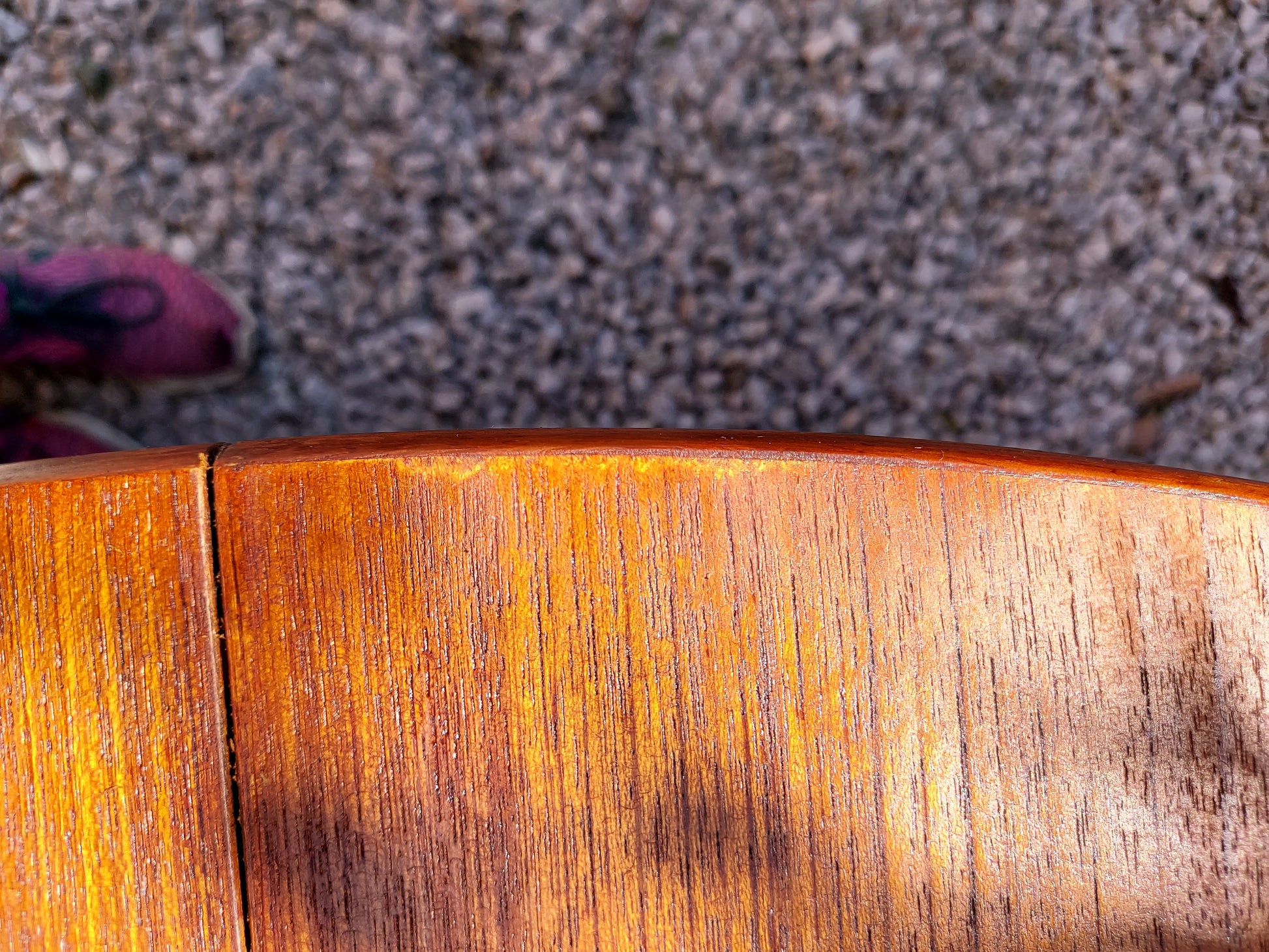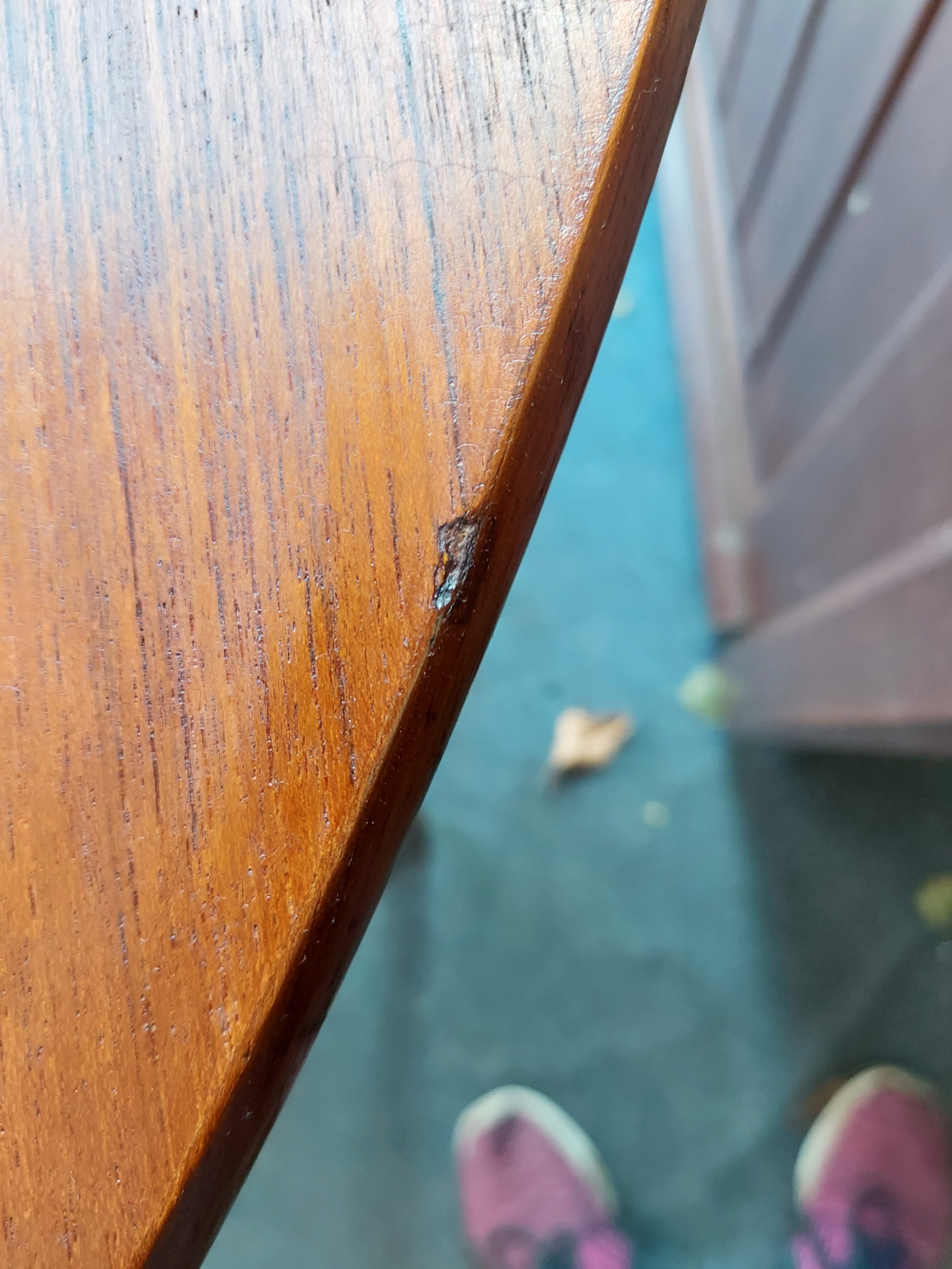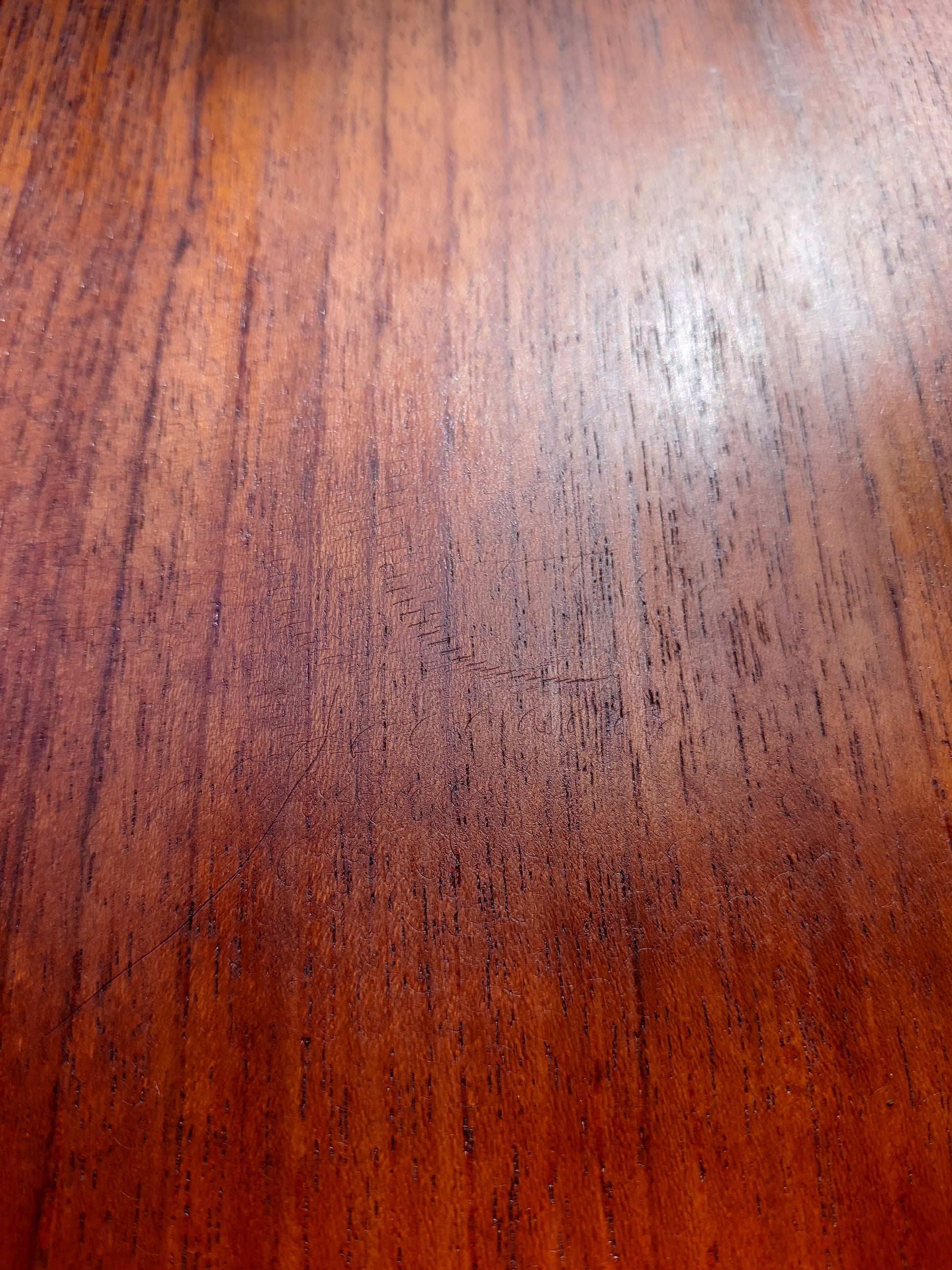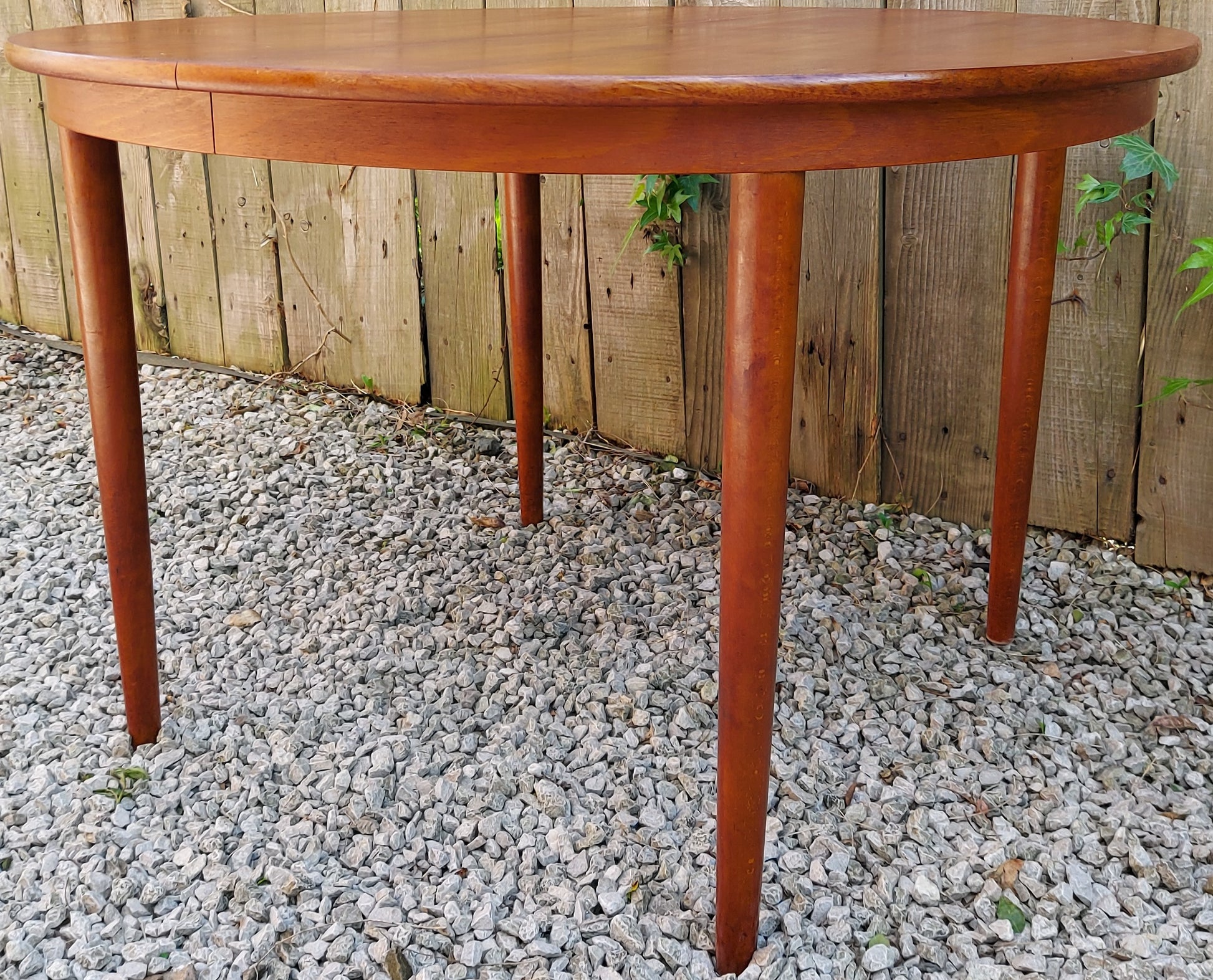 This is a preloved item so may show some signs of wear and tear consistent with its age and use. There are surface scratches to the top but I have sanded the table top down and reoiled it so it is smooth to the touch. There is some wear to the veneer at the edges. Although the table does open to accommodate an extra leaf, I do not have the extending leaf so the buyer would have to source one if . The table works perfectly as a round table. of this detracts from its use and retro loveliness.